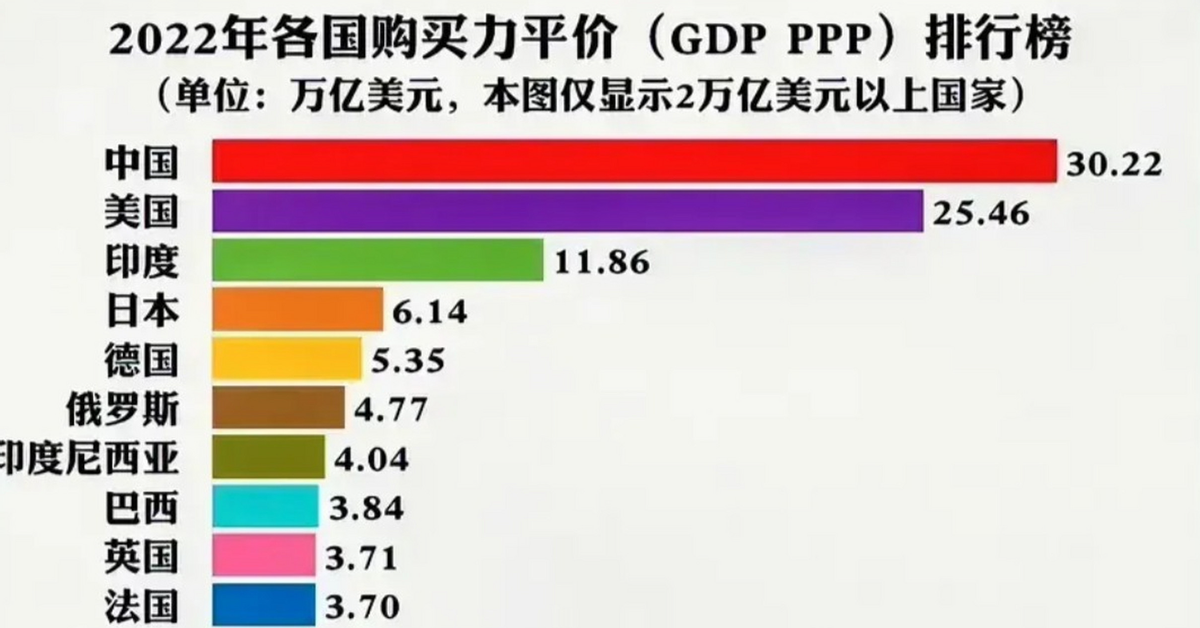 从购买力上讲,中国的GDP早已经超过美国,比如美国造一艘航母花费的资金,中国可以造两艘甚至以上,这就是购买力。