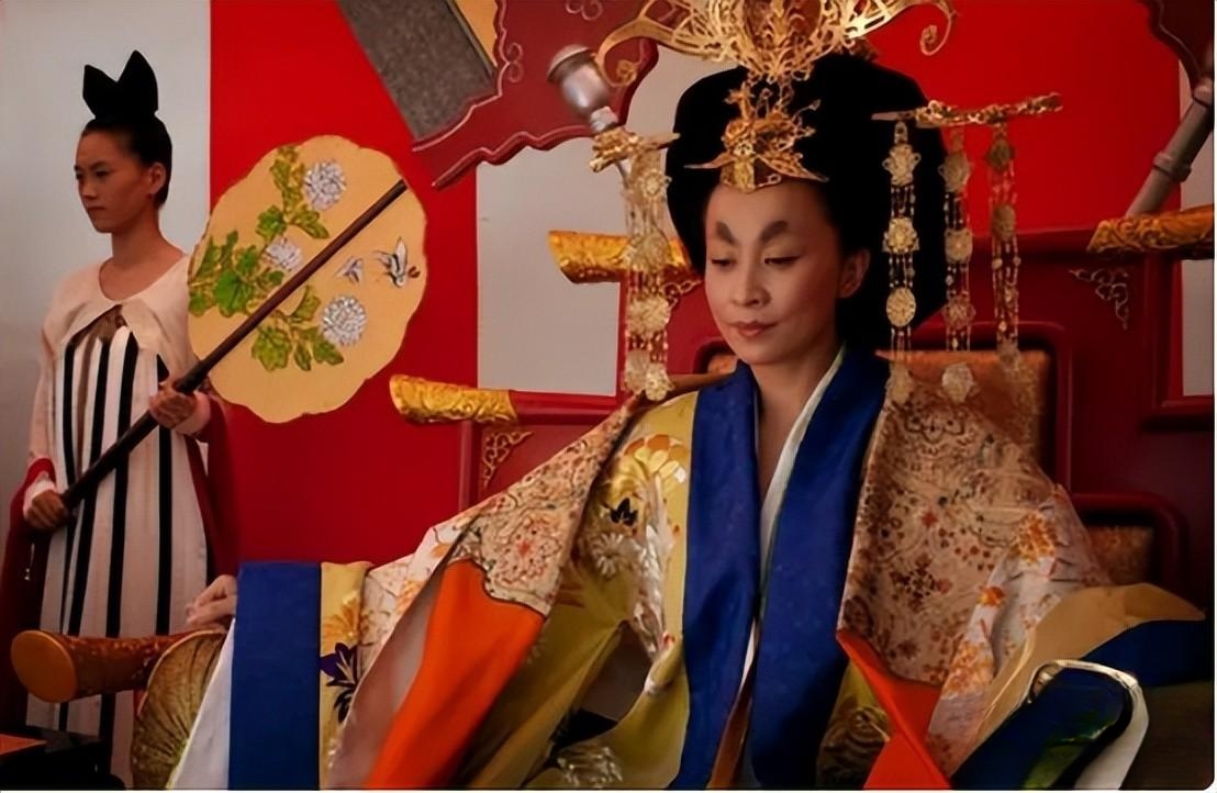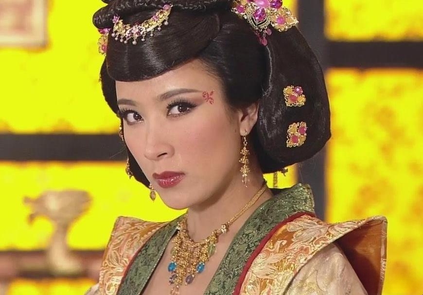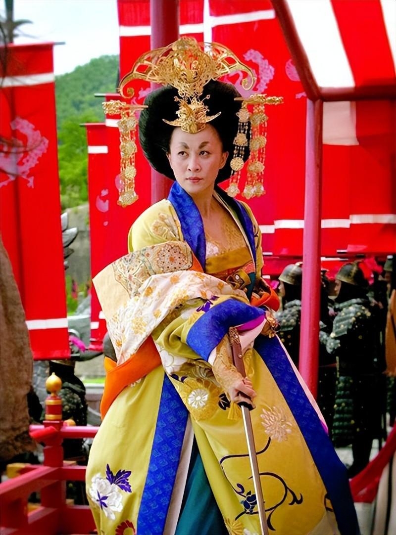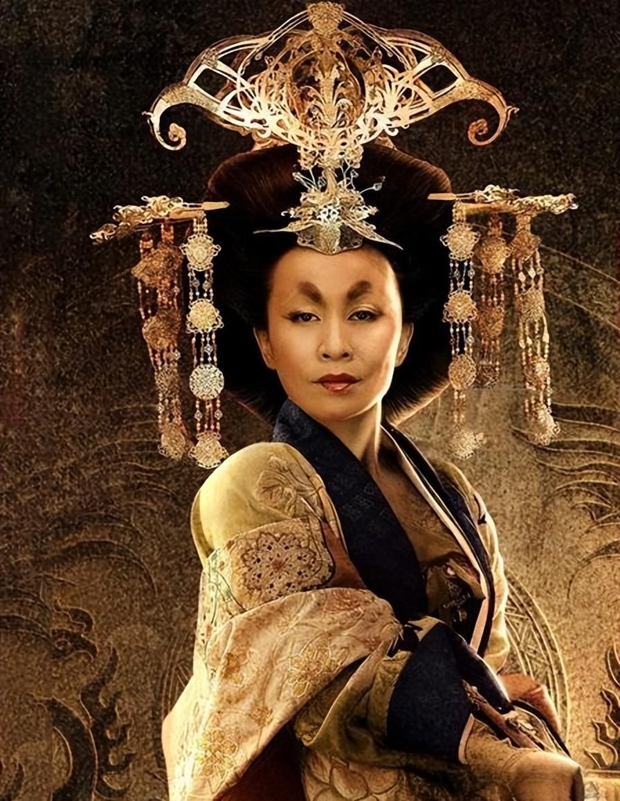 即使装饰沉重,刘嘉玲的武则天也脊背挺直,眉目低敛,让人辨不出神色。