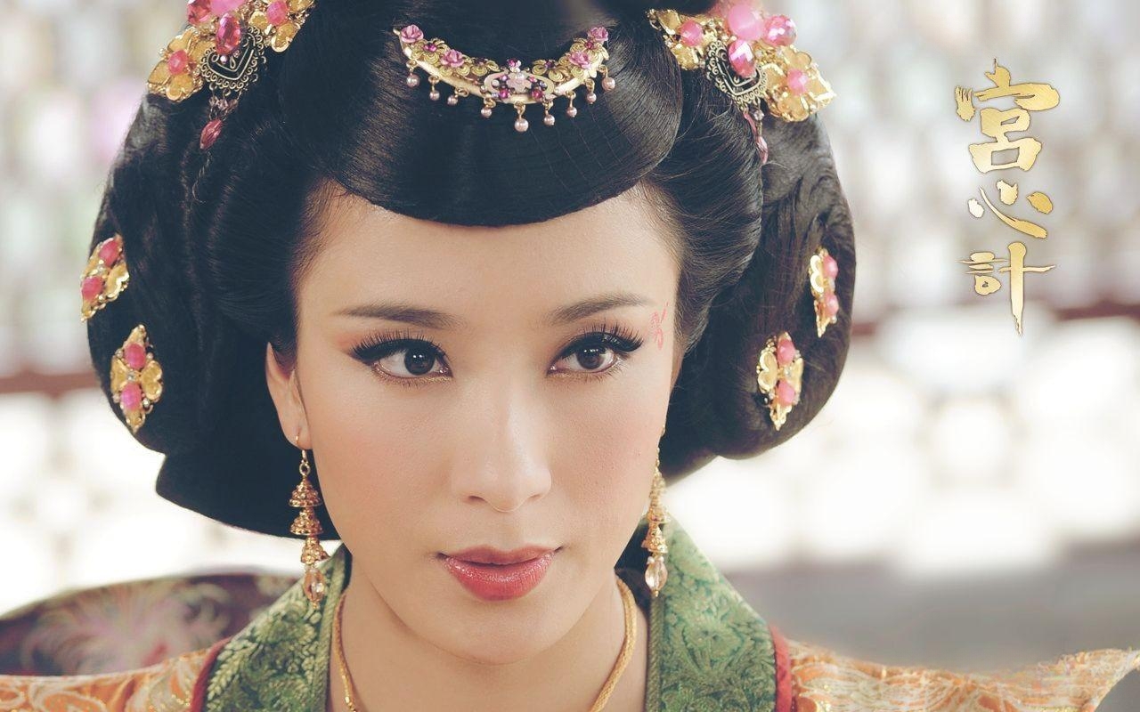 《宫心计》中她的眼妆又着重在眼尾,勾勒出红色图案,更惹人注目。