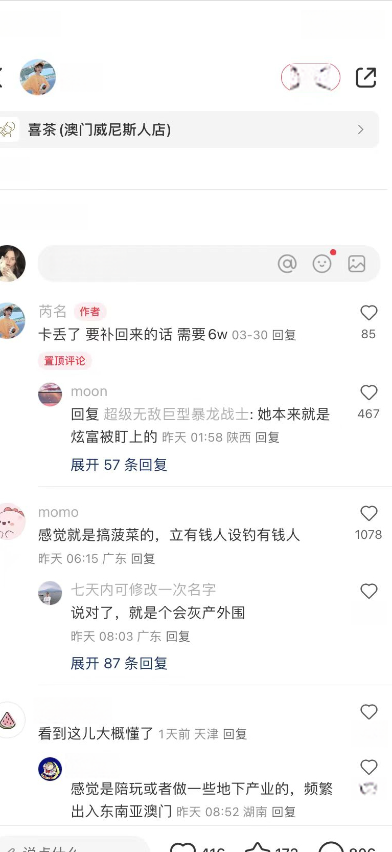 更是在今年的三月份,在社交媒体中晒出需要十二亿流水才能打造出来的澳门金卡!并且还在评论区中说明如果这张卡丢失的话,更是需要花费六万元的费用才可以补办。据说这个卡可以置换深圳的一套豪宅!由此可见啊,这名女子的家境可谓是异常的优越啊。