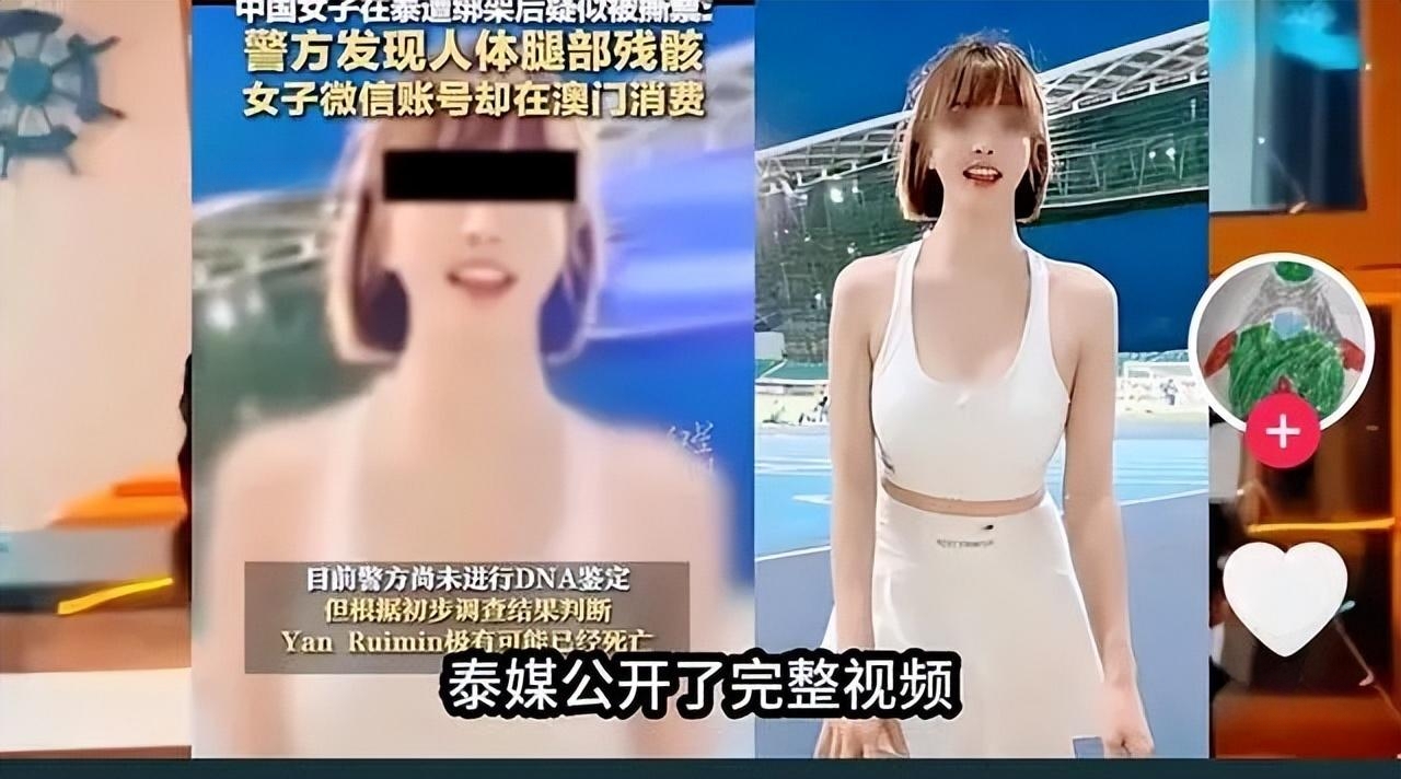 7月13日,泰警方发布通报,通过接走Yan Ruimin的车辆行驶痕迹,发现更多线索,最后在北柳府Bang Phra地区的一处村庄发现了她的部分遗体。