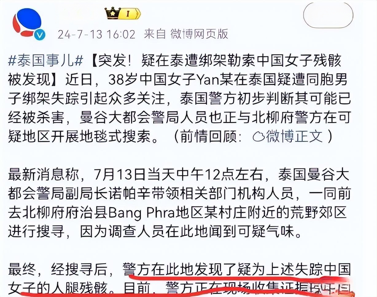 信息来源:泰国遭肢解中国女子身份曝光,曾晒流水12亿金卡,和何猷君王嘉尔互动 中华网热点新闻 2024-07-15