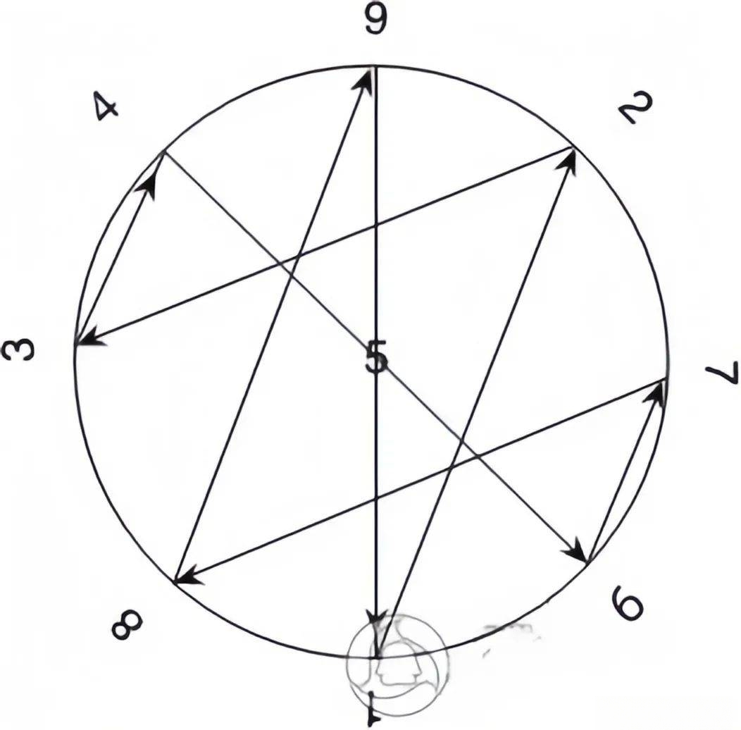 通过从1到2循序贯穿到9,最后归位的场能运行路线,我们看到了宇宙间的平衡、稳定的场能分布现象,在九星风水学中的“紫白飞星”及元运的纵横飞布中,无时无刻地在运用着这种排布飞星的路线图,无论是顺飞还是逆飞,这种平衡、对称而协调的步调都不会乱,因为这是自然的法则。