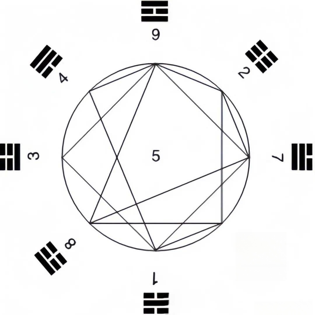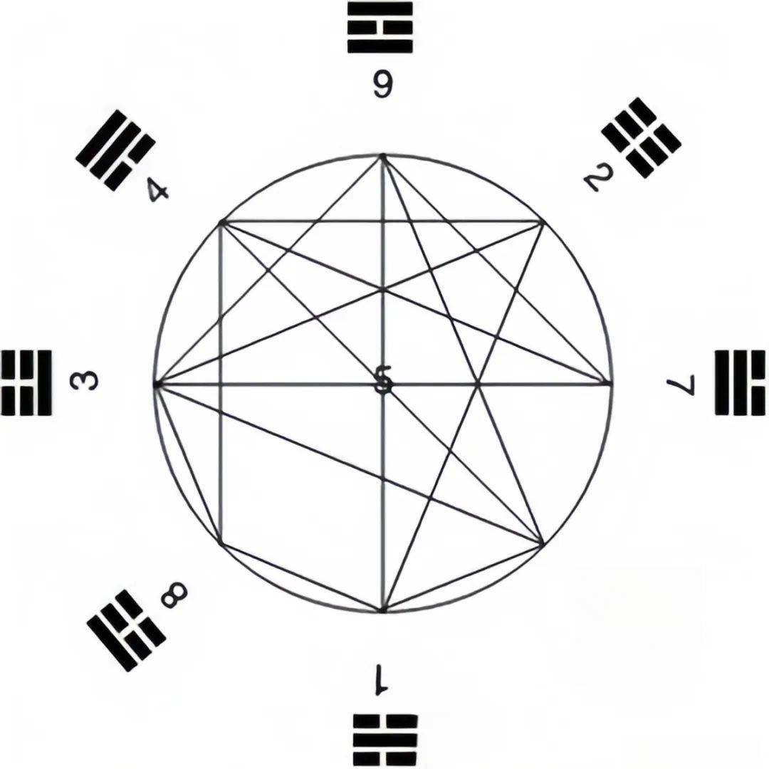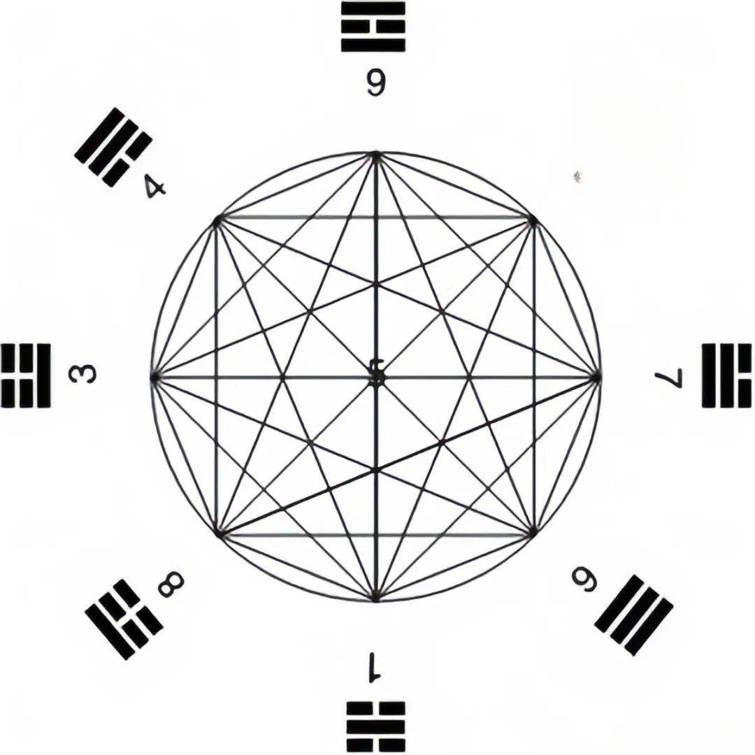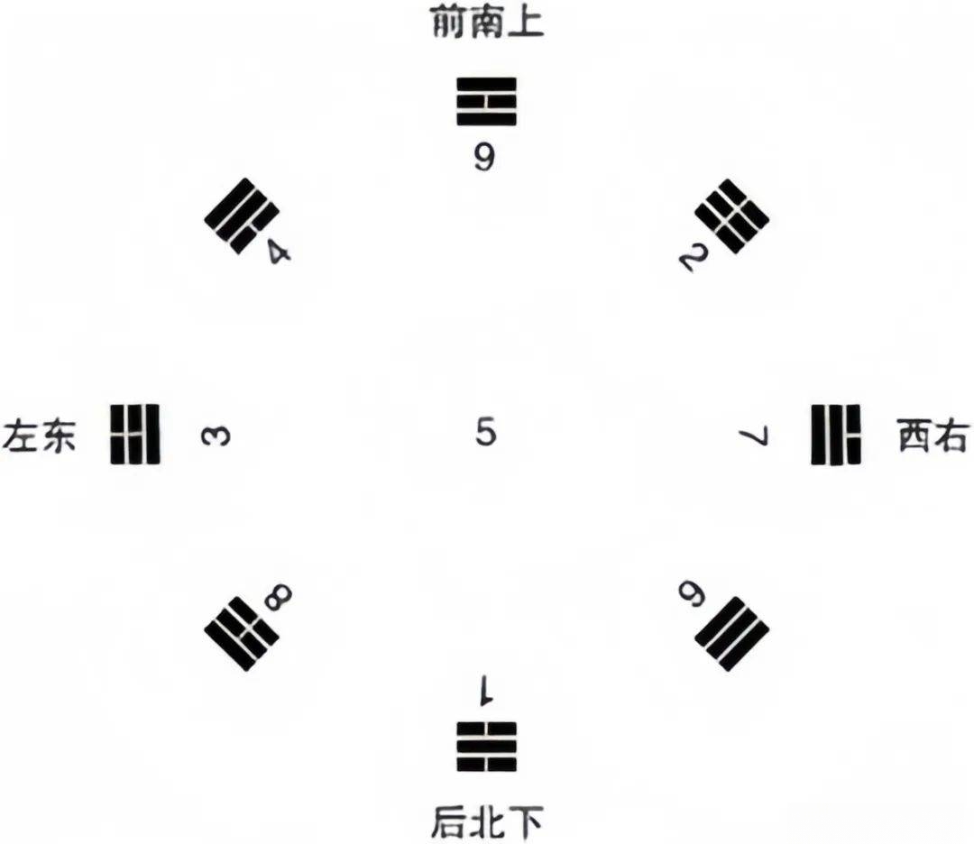 后天八卦与洛书九宫有着密不可分的联系,上南下北,左东右西,戴九履一,左三右七,二四为肩,六八为足,五居中央。