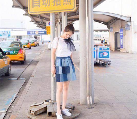 牛仔短裙搭配白色的T恤,依旧还是小白鞋,清新的女孩子这样穿准没有错呢。