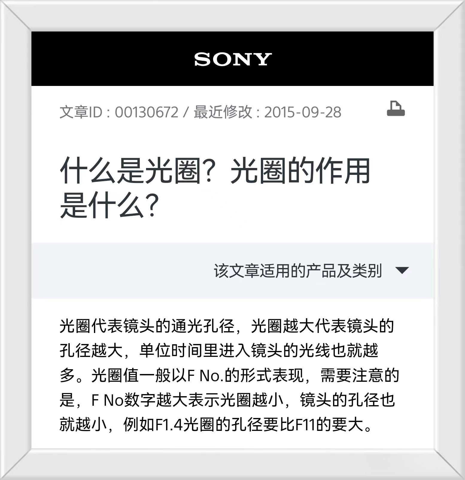 关于光圈,大家所熟悉的索尼给出了如上图所示之定义,而这就是对于光圈最简单的文字定义,至于手机端最常见之光圈值则是通过以下计算关系得出的。