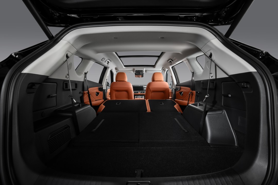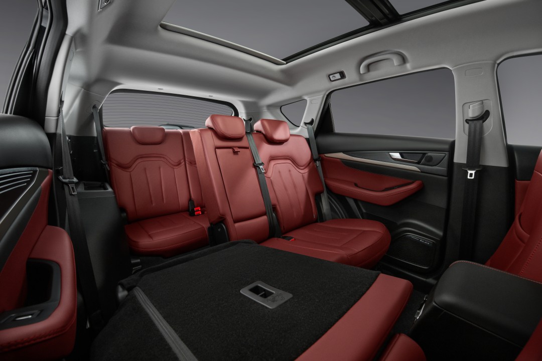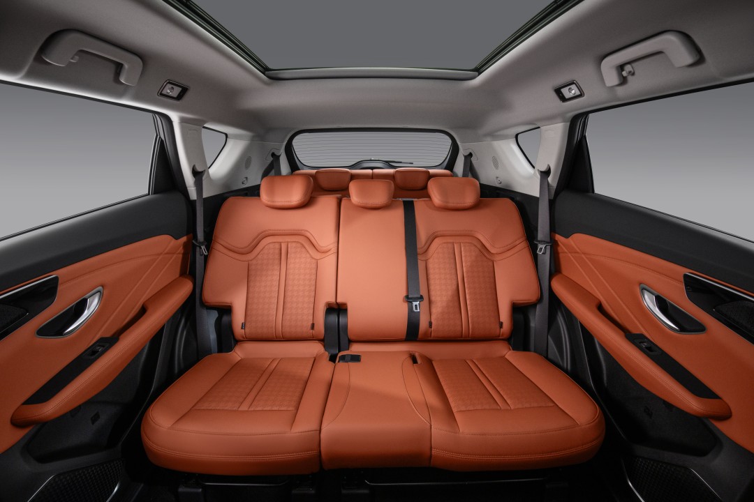 空间方面,4749mm车长、1900mm车宽与2745mm轴距带来同级领先的得房率。5/7座随心切换,12种座椅组合,二排座椅25°-41°靠背可调,二排腿部空间达960mm,头部空间997mm。二排放倒后车内容积可达1688L,可容纳24个20寸行李箱,全车33处精细储物格让每一件物品都有序安放。