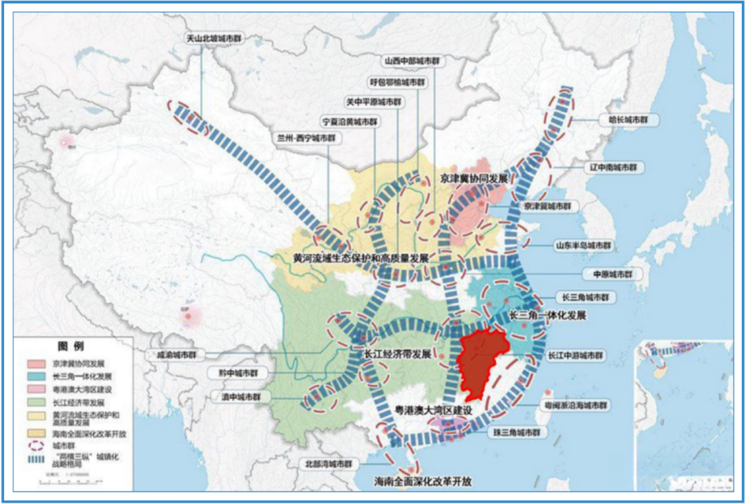 融入多向区域开放格局,推动与长江三角洲城市群协同发展,促进与海峡西岸经济区联动发展,加强与粤港澳大湾区合作,融入长江中游城市群高质量发展。