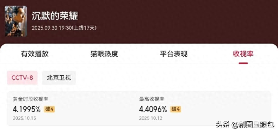 《沉默的荣耀》在央视八套创下收视峰值破4%的佳绩,这部聚焦1949年前后台湾隐蔽战线的谍战剧,已成为今年国剧市场的重磅炸弹。