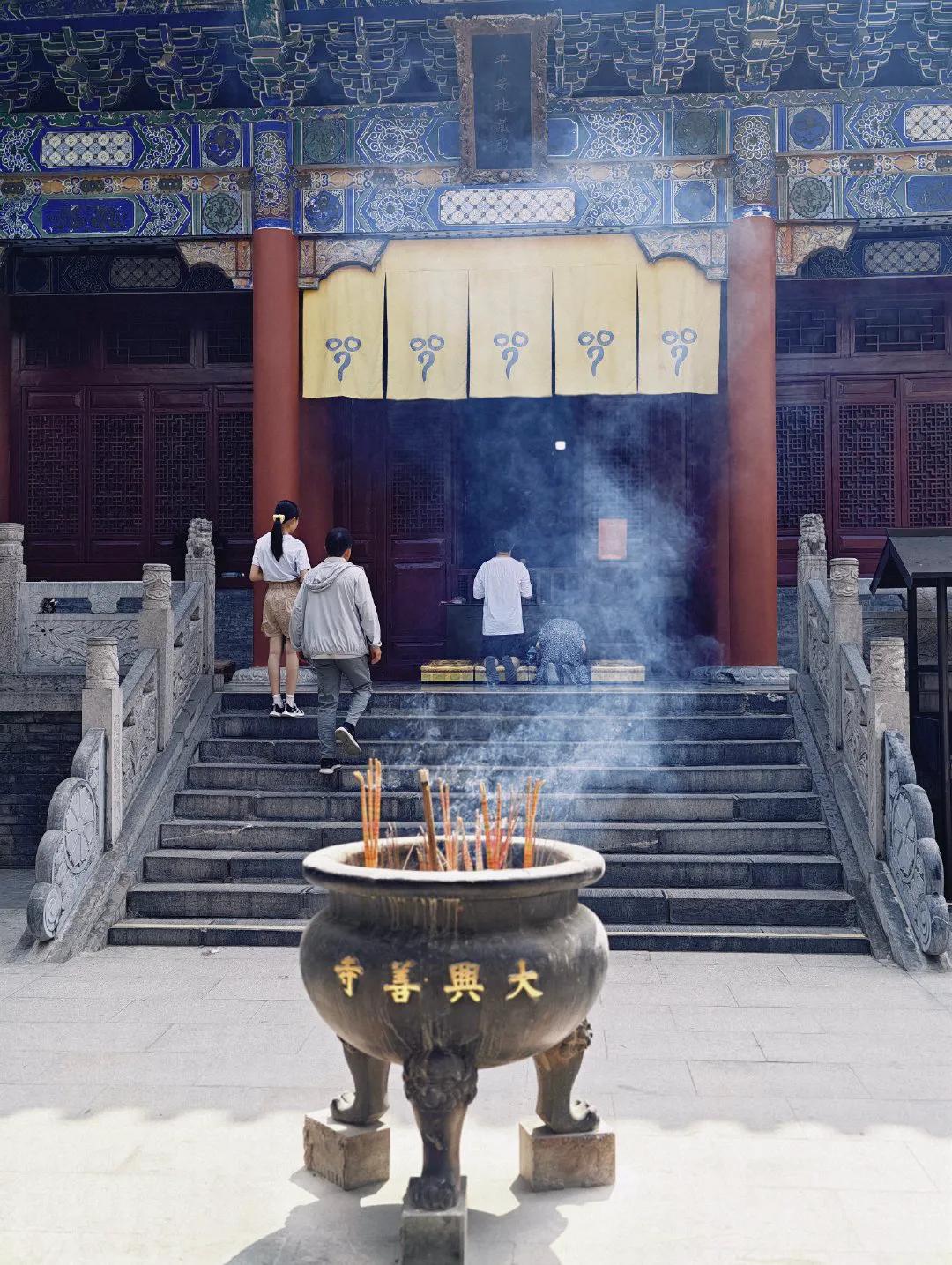 今日的大兴善寺,隐于西安雁塔闹市,免票随喜,香火自取。院外红尘滚滚,院内古柏森森;求财者向财神点灯,求子者对观音许愿,更有传言“求姻缘极灵”。周末来此,一炷清香,半日闲坐,便见千年时光在檐角风铃中轻轻回响。