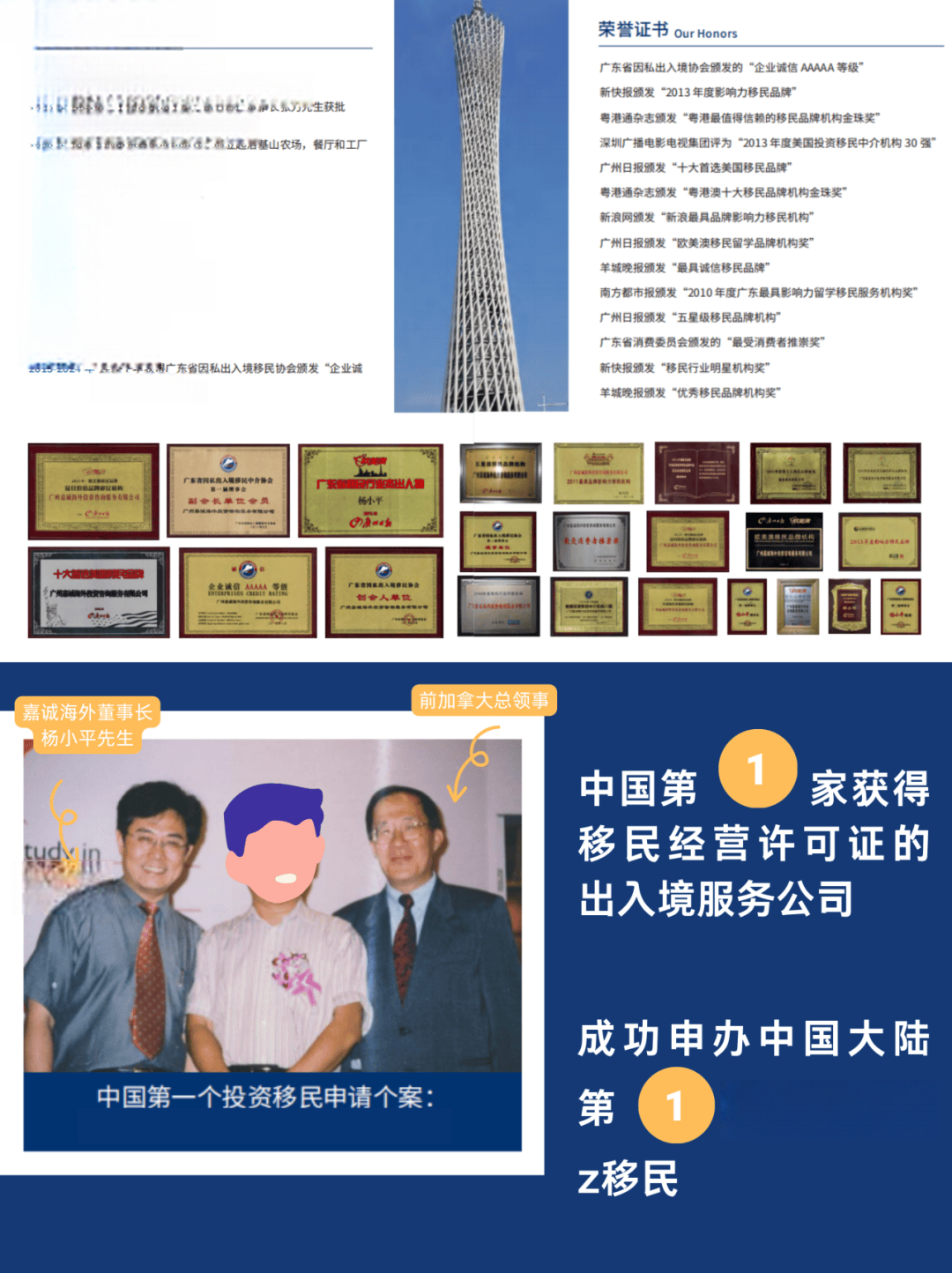 ✅行业标杆:国内第一家获得移民经营许可证的出入境服务公司,成功申办国内第一例加拿大投资移民